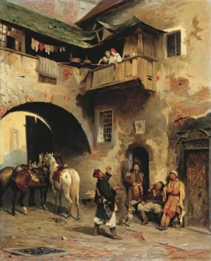 • Alfred Wierusz – Kowalski obraz Ciekawa Nowina, 1876