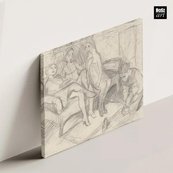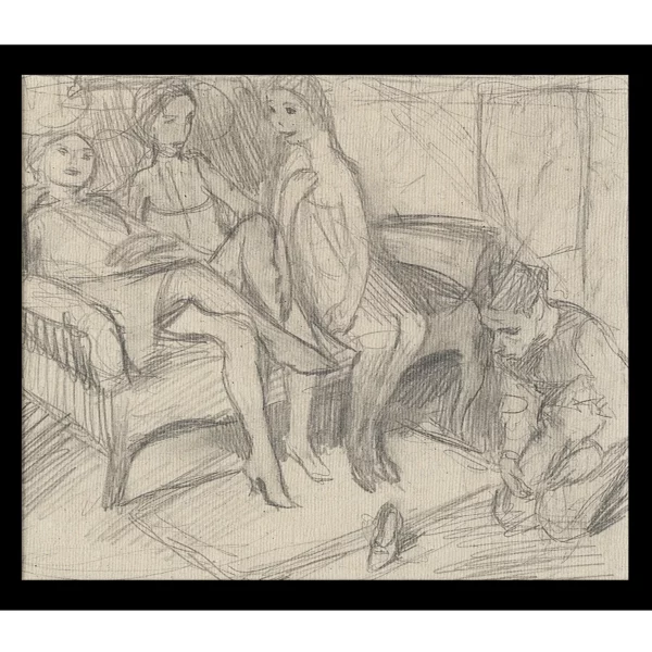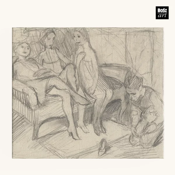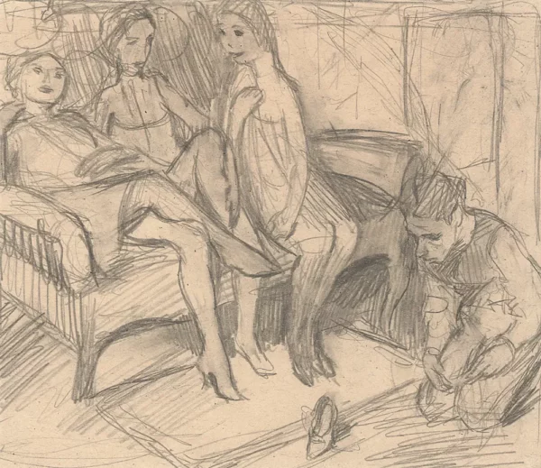 Bruno Schulz obraz Adoracja pantofla. Trzy kobiety i mężczyzna (autoportret), ok. 1936
