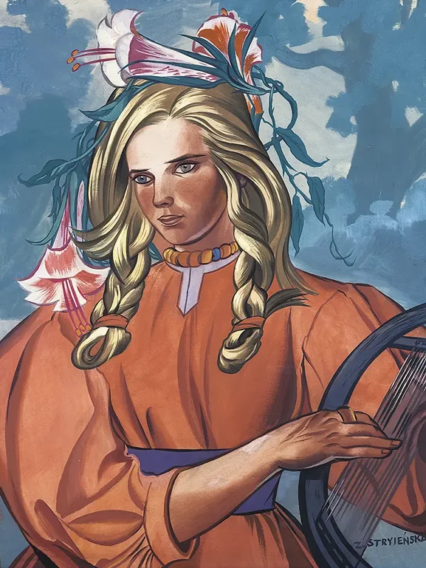 • Zofia Stryjeńska obraz Dziewczyna z lilią na głowie