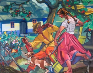 • Zofia Stryjeńska obraz Wiejska zagroda